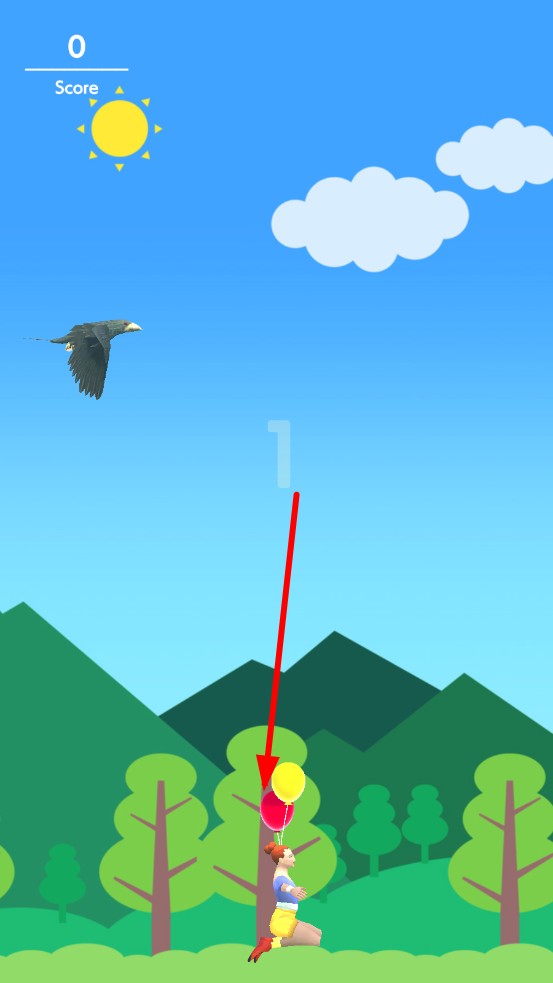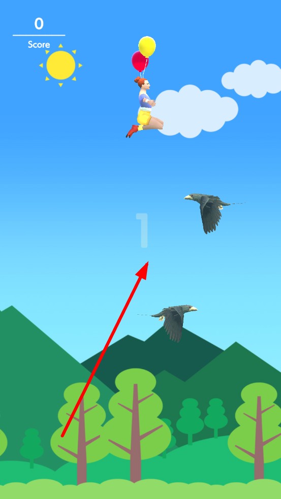2、 保護角色頭上的氣球,兩個氣球代表有兩條命,避免被老鷹碰撞,若氣球都破裂了,則游戲結(jié)束。
