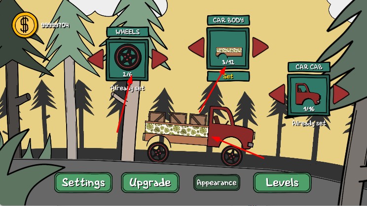 3、成功完成關(guān)卡,可返回升級車輛部件,提升性能,繼續(xù)挑戰(zhàn)新關(guān)卡。