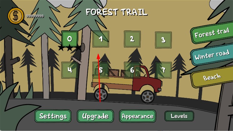 2、賽車系統(tǒng)個性定制:提供多款登山卡車,支持性能升級,如引擎、輪胎、懸掛系統(tǒng),不同賽車的爬坡能力、穩(wěn)定性差異明顯,可根據(jù)地形特點(diǎn)選擇適配車型。