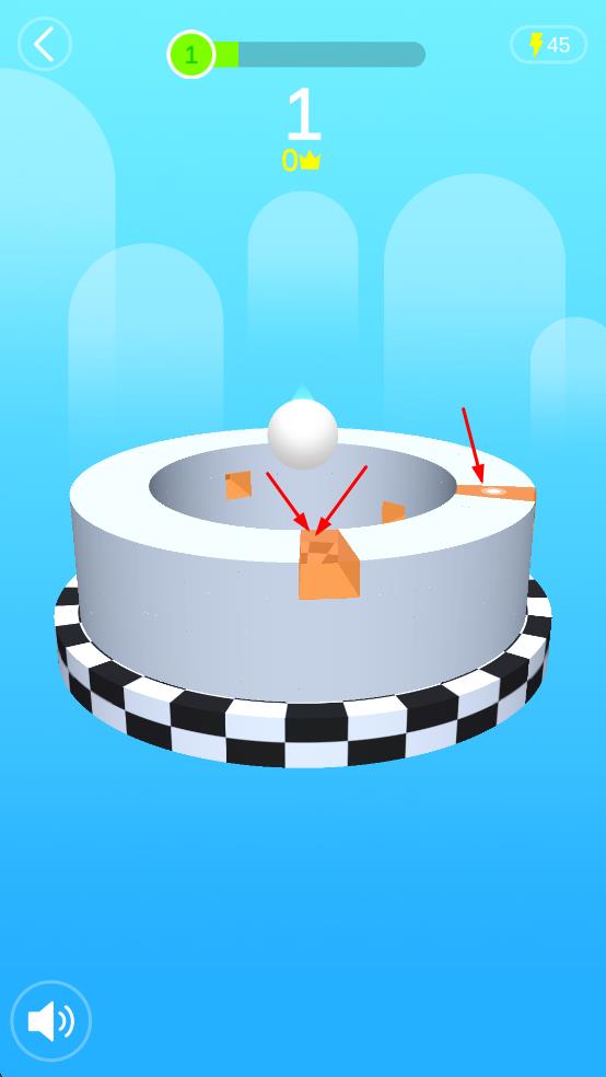 1、進(jìn)入關(guān)卡,滑動(dòng)屏幕控制環(huán)形平臺(tái)旋轉(zhuǎn),調(diào)整白球滾動(dòng)路徑,瞄準(zhǔn)橙色方塊收集。