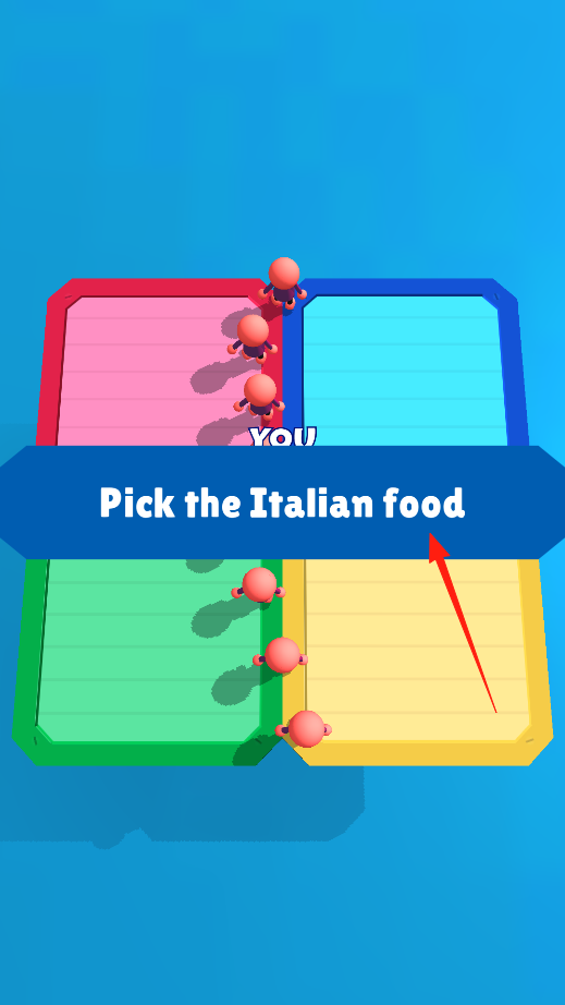 2、第一關(guān)的題目是讓你選擇正確的意大利食物,這就要考驗(yàn)到你的知識(shí)儲(chǔ)備能力了,不會(huì)也沒關(guān)系,往人群多的地方走肯定沒問題。