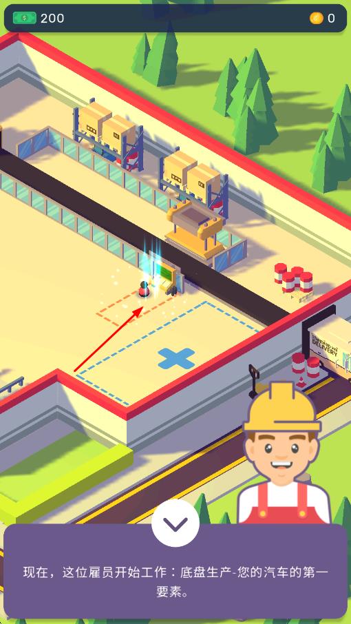 1、進(jìn)入游戲后選擇初始工廠區(qū)域,放置基礎(chǔ)汽車生產(chǎn)線,啟動(dòng)設(shè)備開始生產(chǎn),通過售賣汽車獲取初始金幣收益。