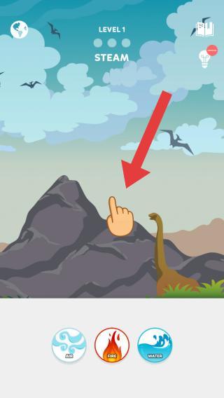 1、畫面處于LEVEL1的關卡,呈現(xiàn)了遠古時代的場景,玩家需要根據(jù)手指的指向進行相對應的操作。