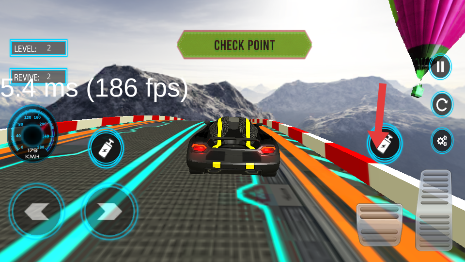 3、抵達CHECK POINT觸發(fā)氮氣時點擊對應的圖標,在直道或者跳臺段加速,利用復活的次數(shù)REVIVE。