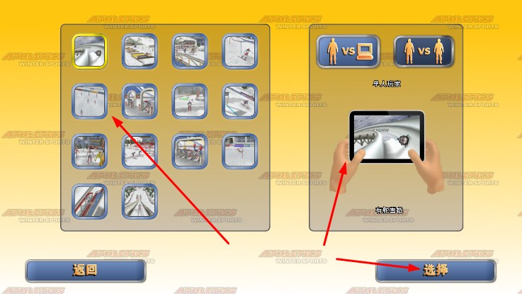 1、打開游戲,在主界面選經(jīng)典游戲模式,進入項目選擇頁,點選有舵雪橇等運動項目,確定單人或雙人對戰(zhàn),點擊選擇進入。