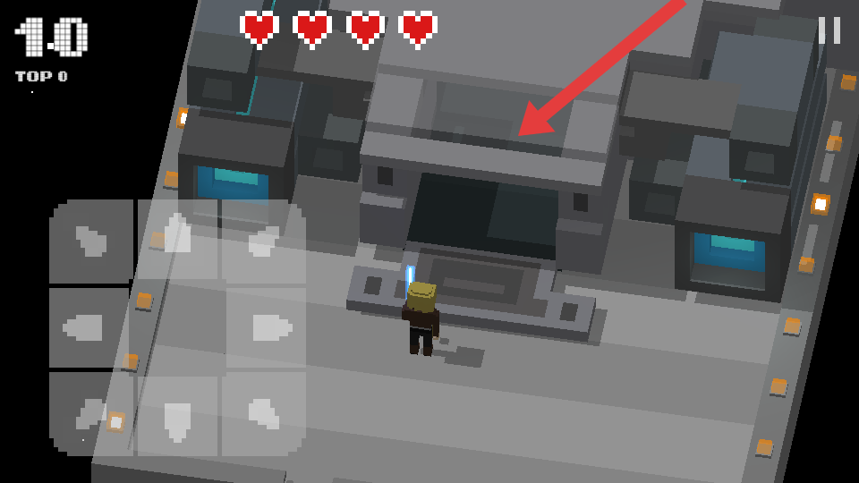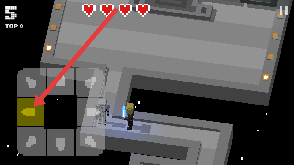 1、操控角色移動(dòng)至銀白色敵人的面前,利用左下角的按鍵進(jìn)行攻擊,同時(shí)關(guān)注上方4顆愛心的血量狀態(tài)。