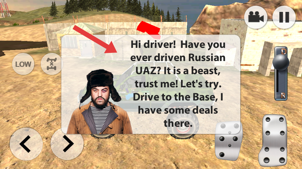 1、查看對(duì)話提示,接受駕駛俄羅斯UAZ車(chē)輛前往基地的任務(wù),明確Drive to the Base的目標(biāo),準(zhǔn)備開(kāi)啟越野駕駛挑戰(zhàn)。