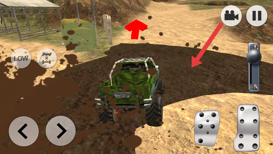 2、操控迷彩UAZ越野車(chē)行駛在泥濘路段時(shí),通過(guò)左下角方向鍵控制轉(zhuǎn)向,右側(cè)油門(mén)按鍵調(diào)節(jié)動(dòng)力,克服泥濘的阻力。