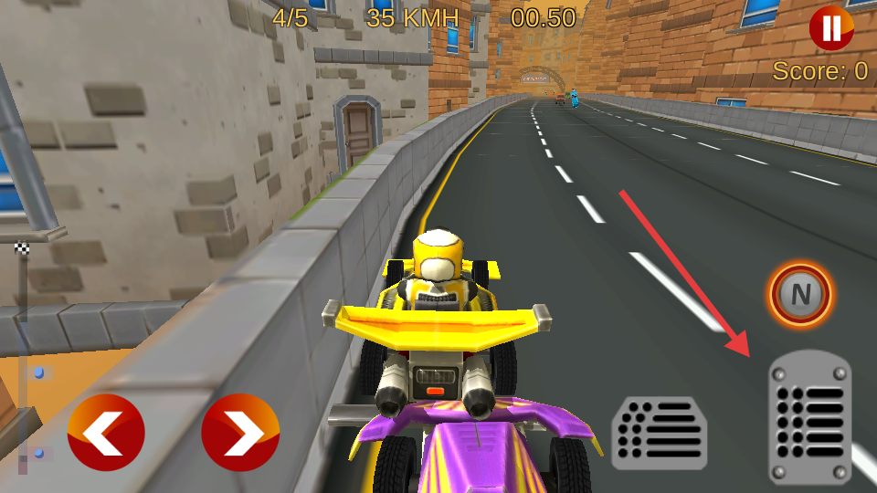 3、通過(guò)左右滑動(dòng)控制方向,點(diǎn)擊屏幕使用加速道具。