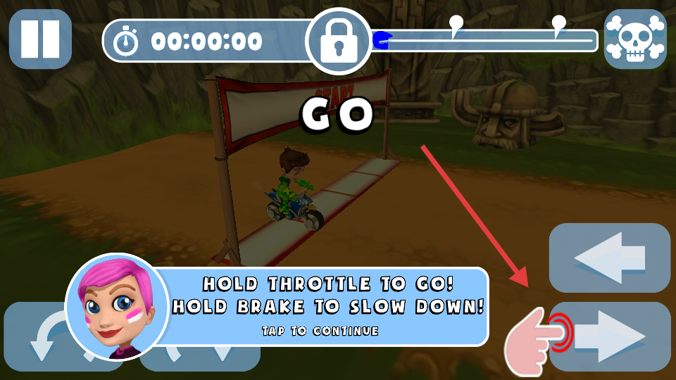 1、通過傾斜設(shè)備或滑動屏幕控制摩托車平衡與方向。