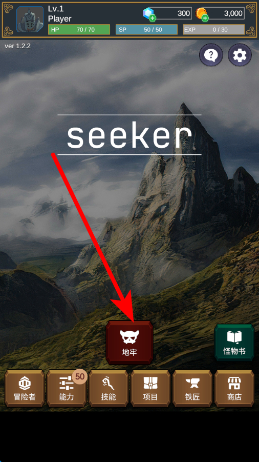 1、進(jìn)入游戲后先輸入冒險(xiǎn)者用戶名,在主界面點(diǎn)擊冒險(xiǎn)者選項(xiàng),查看當(dāng)前裝備與各項(xiàng)屬性參數(shù),了解自身基礎(chǔ)戰(zhàn)力,為后續(xù)地牢冒險(xiǎn)做好準(zhǔn)備。