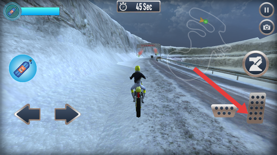 3、專注目標擊敗對手:盡管道路對瘋狂漂移雪地自行車賽車模擬器非常危險,但用戶必須專注于目標,在特定時間完成任務,擊敗對手的自行車騎手。