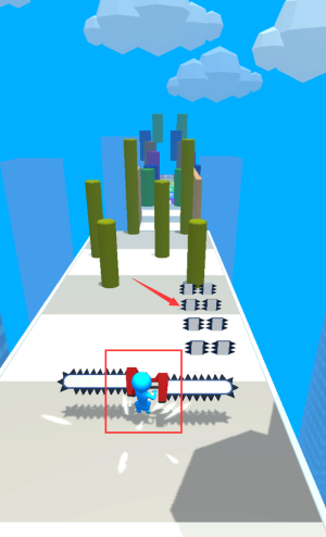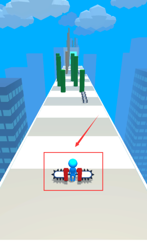 2、操控紅框藍色小人,跳過鋸齒狀水平障礙物。