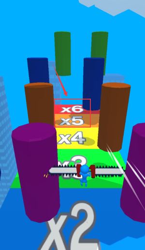 3、控制電鋸角色進入紅框5區(qū)域,獲取高分倍數(shù)。