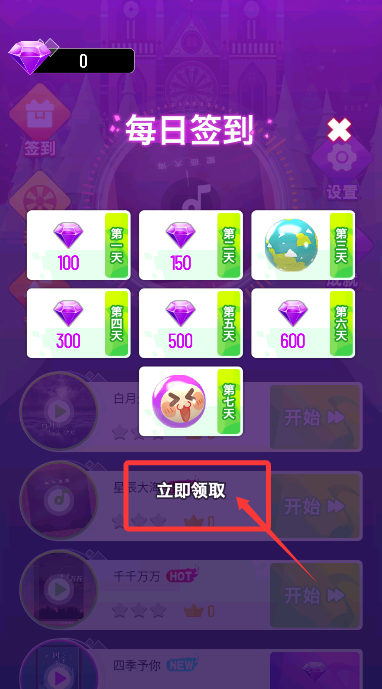 1、登錄游戲后,先進(jìn)入每日福利頁面,點(diǎn)擊領(lǐng)取按鈕獲得寶石等獎(jiǎng)勵(lì)。