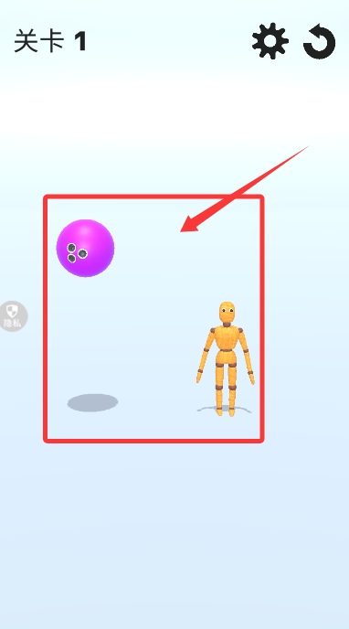 1、游戲開(kāi)始后,控制紫色圓球移動(dòng)并撞擊第一關(guān)的黃色目標(biāo)物。