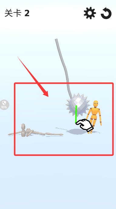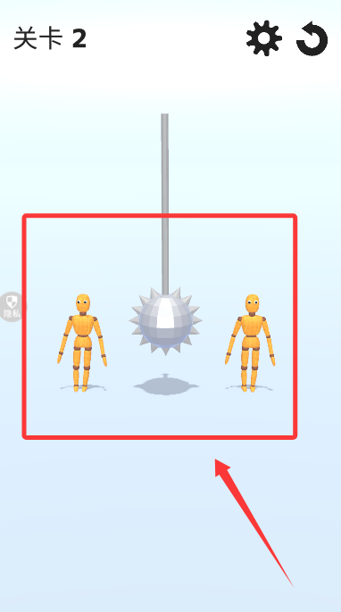 3、來(lái)到第二關(guān),根據(jù)策略來(lái)選擇合適的方式,使用懸掛在目標(biāo)之間的尖刺物品。