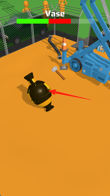 2、大錘落下后、砸向地面黑色花瓶目標、借助升級提升效果、重復操作積累金幣解鎖玩法。