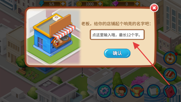 2、給店鋪起名最長12字 ,輸入后點確認(rèn),完成店鋪創(chuàng)建,開啟經(jīng)營。