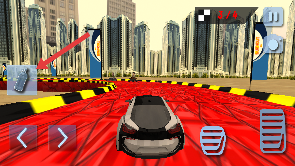2、在行駛中需要留意左側(cè)的技能道具瓶,需要及時使用,目前落后許多,正是使用氮氣加速瓶的時候。