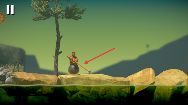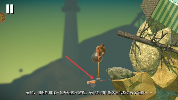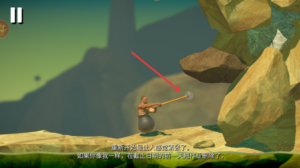 1、進(jìn)入游戲場(chǎng)景,長(zhǎng)按屏幕操控錘子,勾住巖石等支點(diǎn),發(fā)力讓罐中人攀爬,開(kāi)啟挑戰(zhàn)。
