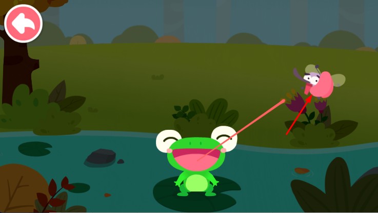 2、在互動關(guān)卡,如青蛙捕食 ,按提示操作幫青蛙捕捉昆蟲,完成小任務(wù)學(xué)習(xí)動物知識,推進冒險進程。