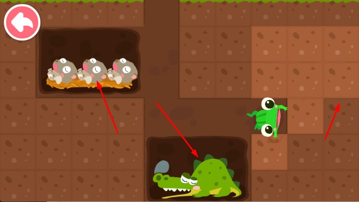 3、解鎖地下迷宮新場景后,規(guī)劃移動路徑避開危險,如鱷魚 ,解救動物。