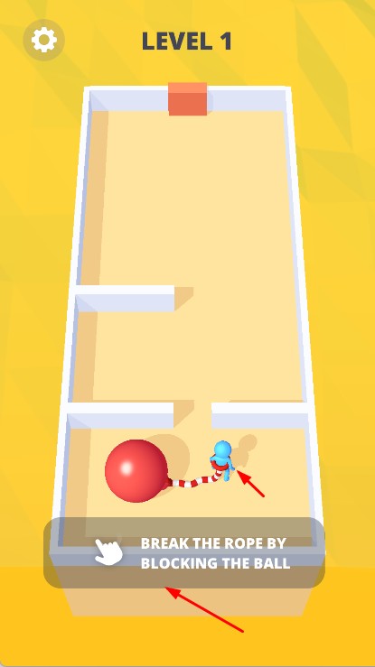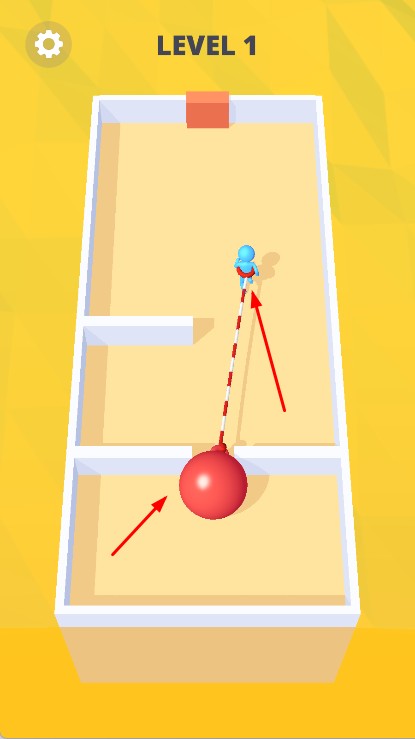 2、移動(dòng)小人,讓紅繩觸碰障礙,觸發(fā)繩子斷裂條件。