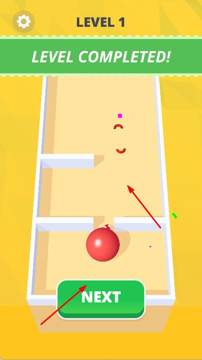 3、成功弄斷繩子,點(diǎn)擊NEXT,挑戰(zhàn)新關(guān)卡。