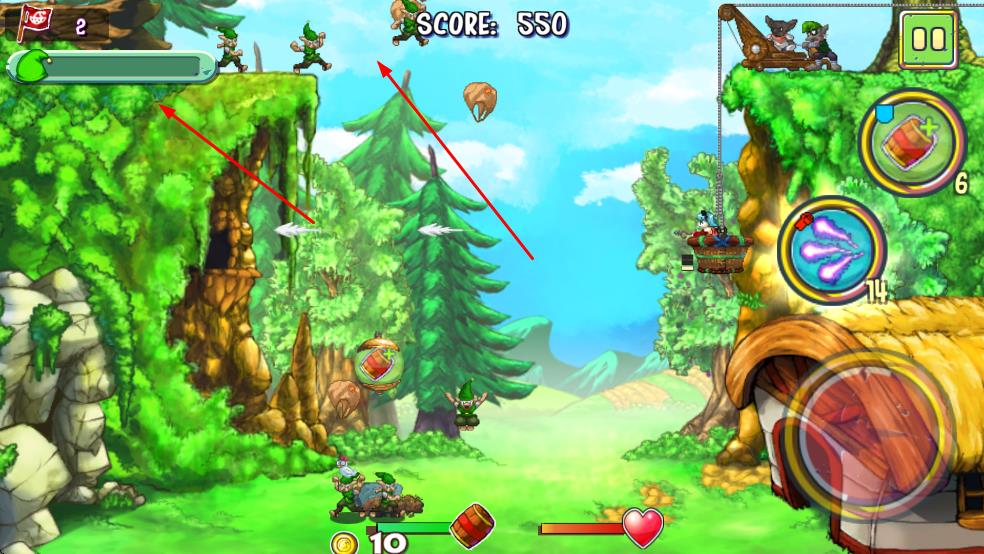1、進(jìn)入游戲,點(diǎn)擊右側(cè)技能按鈕,攻擊森林中的小矮人敵人,開啟戰(zhàn)斗。