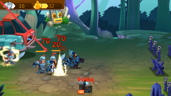 2、在戰(zhàn)斗中,指揮召喚的士兵攻擊藍色怪物,借助技能輸出傷害,逐步殲滅敵人完成通關(guān)目標(biāo)。