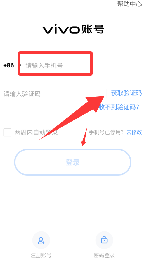 2、輸入手機(jī)號碼獲取驗(yàn)證碼點(diǎn)擊登錄。