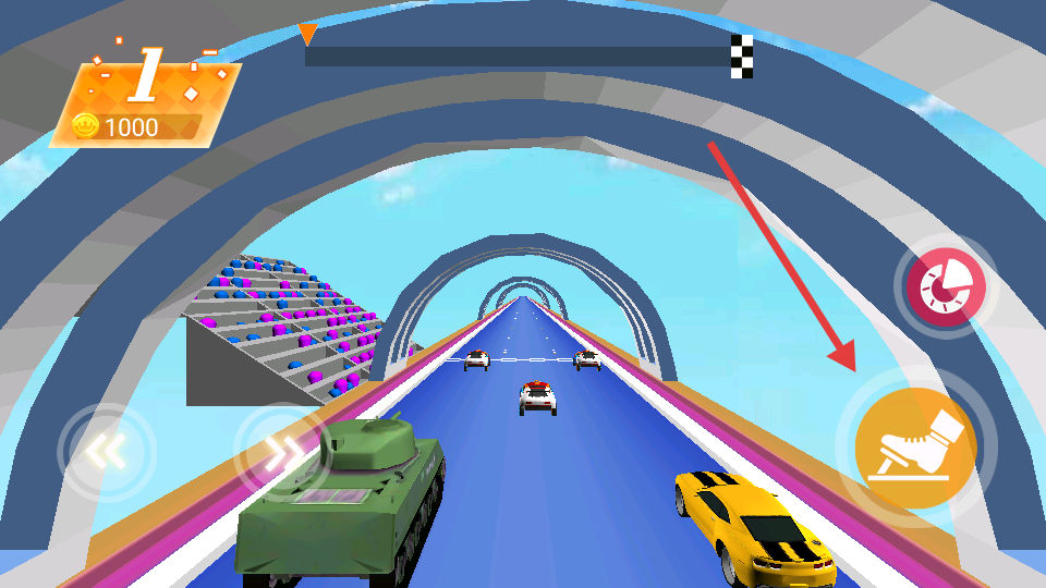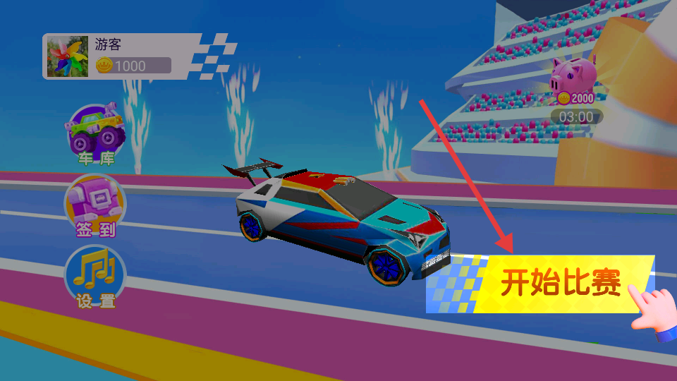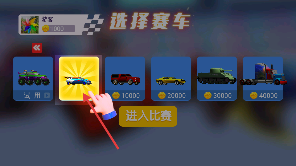 1、選擇心儀車輛開始任務(wù),通過虛擬按鍵控制方向與加速。