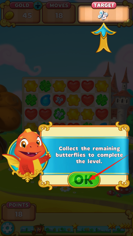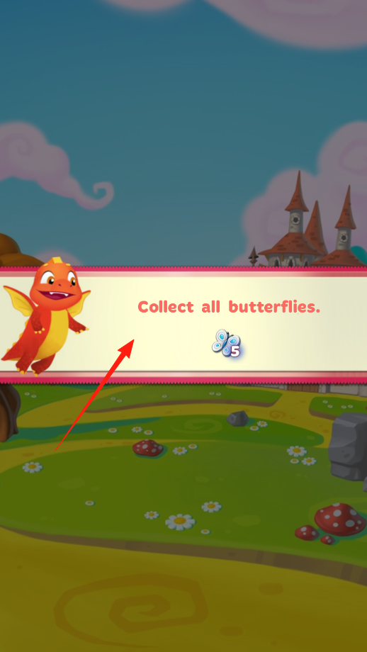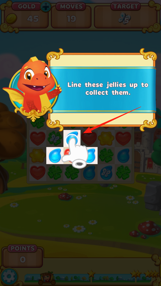 2、提示說要把這些果凍排成一排來收集,那就按照指引,移動果凍,讓它們排成一行,這樣就能成功收集果凍,朝著收集蝴蝶的目標更進一步。