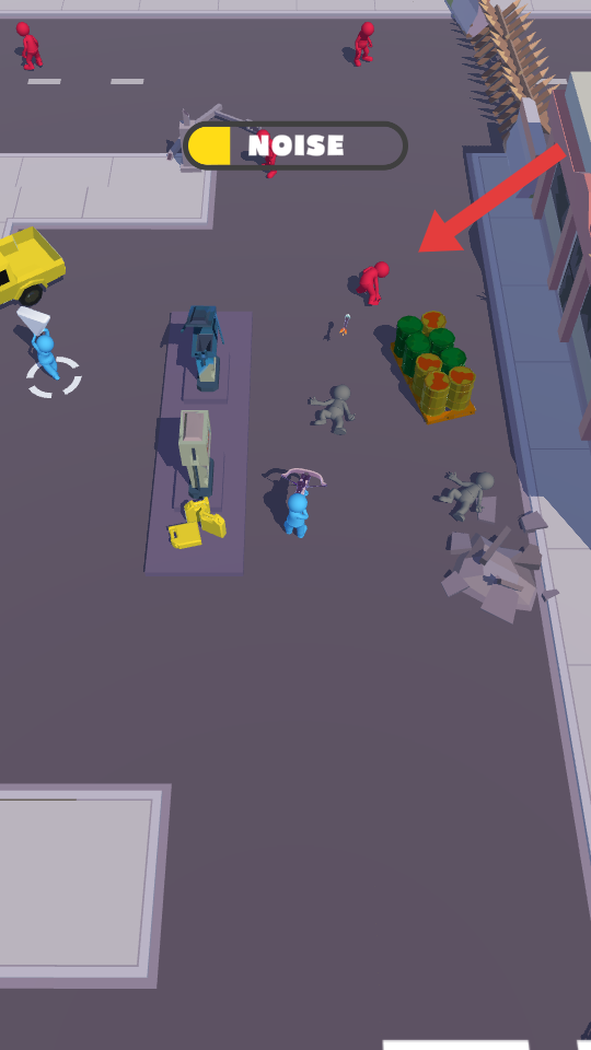 1、操控角色接近紅色僵尸目標(biāo)時(shí),需要留意上方NOISE進(jìn)度,避免制造過多聲響,悄然靠近敵人。