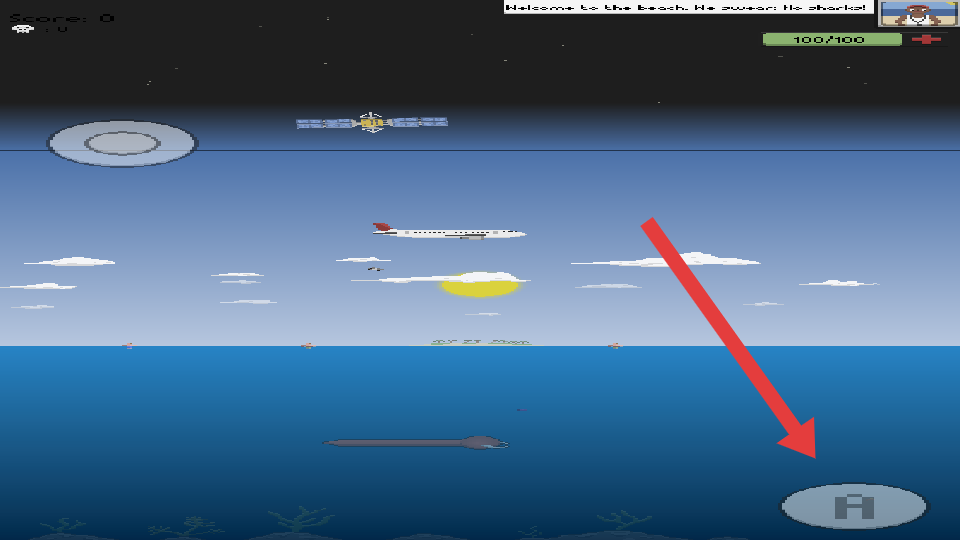 1、進(jìn)入海灘場景,操控水下生物移動,注意上方飛機(jī)、衛(wèi)星,避開空中墜落物,收集海面漂浮物。