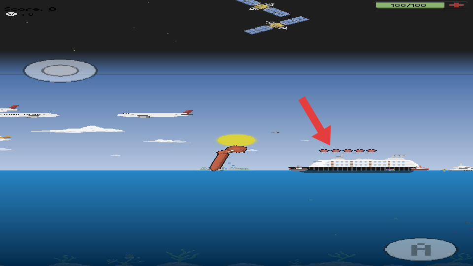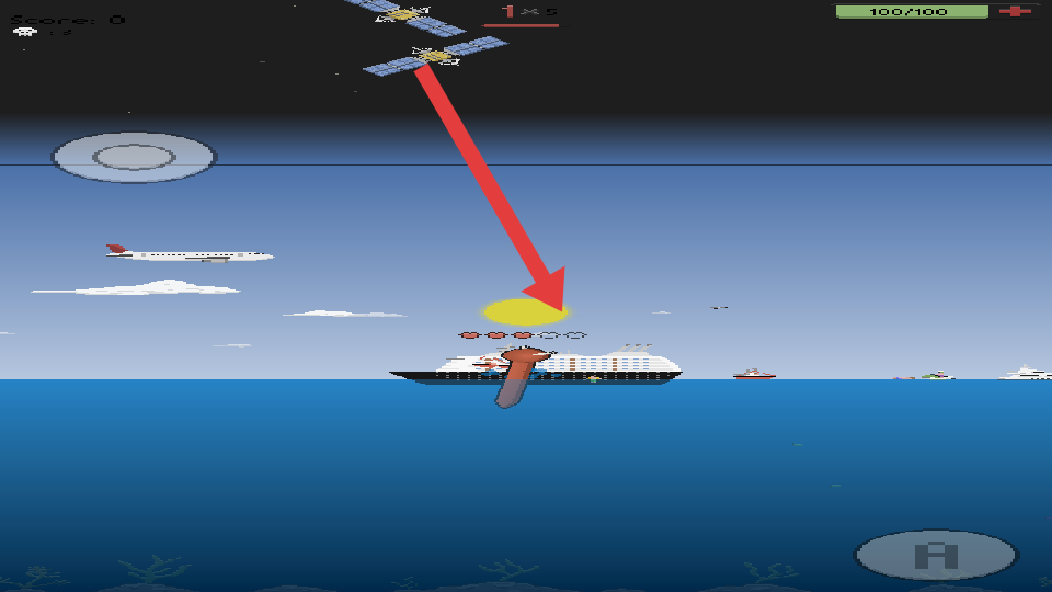 2、遇到大型游輪、飛機(jī)群,利用海水深度下潛躲避碰撞,關(guān)注血量,被撞擊會扣血,保持路徑。