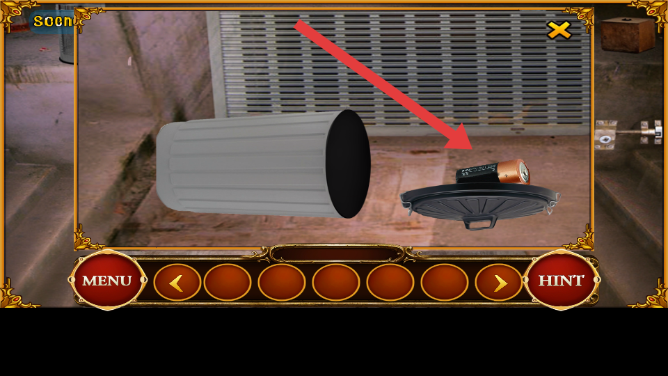3、拾取垃圾桶旁的電池道具含黑色元件與銅電池,該物品可以激活電力設備,收集后關聯(lián)電力的謎題。