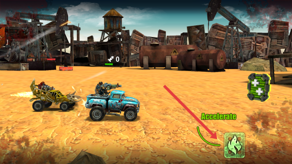 2、在載具場景中,點擊右下角標(biāo)有Accelerate的綠色按鈕,讓己方載具加速,提升戰(zhàn)斗機動能力。