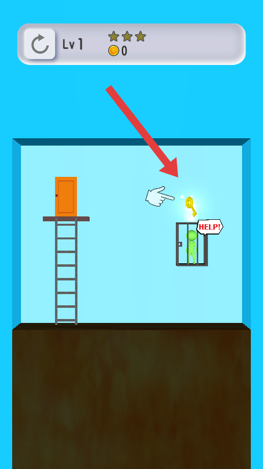 1、在Lv1時(shí)需要先獲取籠子上方的鑰匙救出綠色小人,再操控小人通過梯子抵達(dá)橙色門,完成關(guān)卡目標(biāo)。
