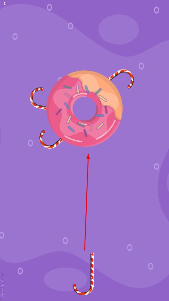1、操控下方拐杖糖向上移動,吸附到粉色甜甜圈周圍,開啟收集挑戰(zhàn)。