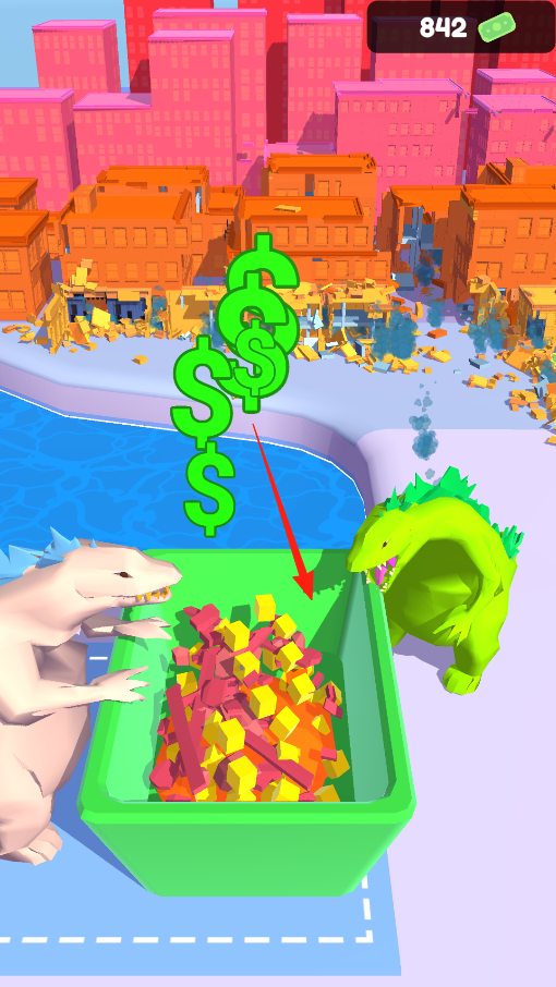 2、破壞建筑吞噬萬物:破壞大量建筑物,所見之物均可吞噬,通過不斷破壞和吞噬來提升怪獸的能力或完成目標(biāo),享受毀滅帶來的視覺沖擊和快感。
