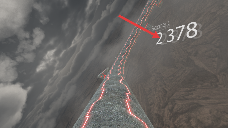 1.進(jìn)入高空的賽道的場景,操控角色沿帶紅光的路徑移動,留意右側(cè)得分分?jǐn)?shù),保持著平衡前行。