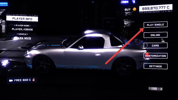 2、進(jìn)入車(chē)輛主界面后,點(diǎn)擊右側(cè)PLAY-SINGLE選項(xiàng),進(jìn)入單人駕駛模式,開(kāi)啟游戲旅程。