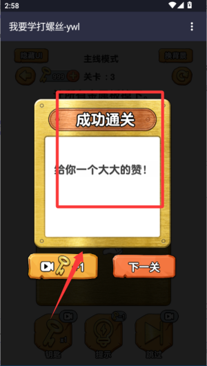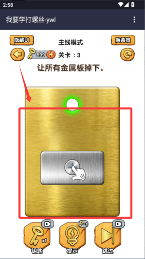 1、進(jìn)游戲先選個(gè)打螺絲的關(guān)卡,看清楚螺絲的位置和方向。用手指按住螺絲頭,按提示旋轉(zhuǎn)就能把它擰進(jìn)去。