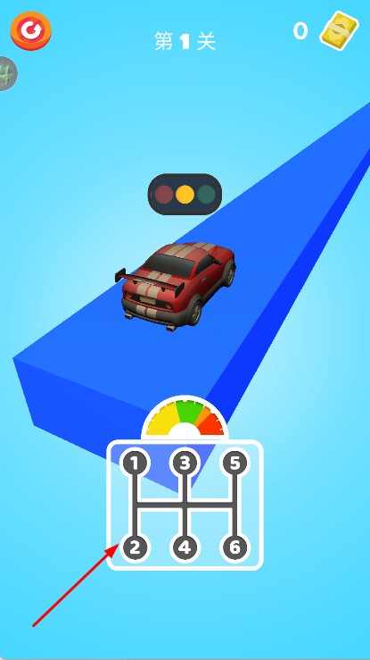 1、點(diǎn)擊開始游戲,進(jìn)入第1關(guān),操控下方H型換擋按鈕,準(zhǔn)備發(fā)車。