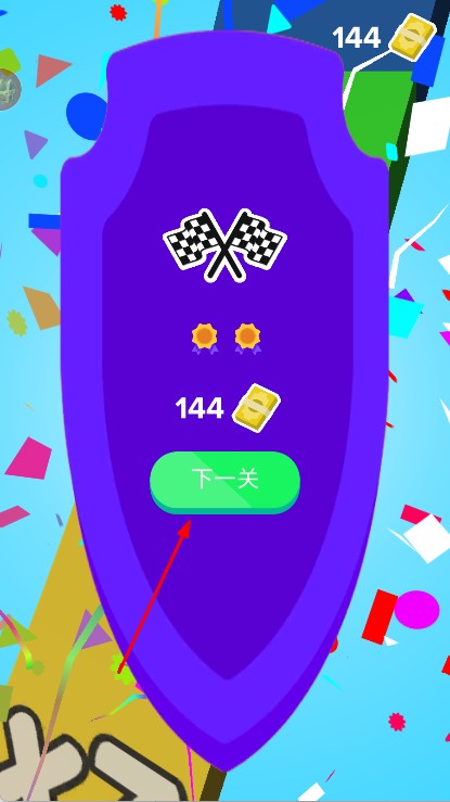 3、成功沖過(guò)終點(diǎn),依據(jù)表現(xiàn)獲金幣、獎(jiǎng)?wù)?,點(diǎn)擊下一關(guān),繼續(xù)挑戰(zhàn)。