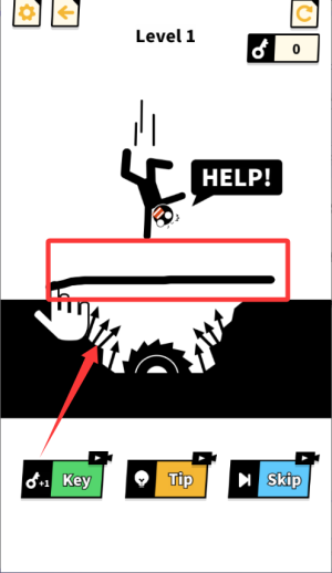 1、進(jìn)入關(guān)卡后先觀察火柴人所處的位置和危險(xiǎn)來源,比如高處掉落或尖刺,想好救援路線再動筆,確保一筆就能解決問題。