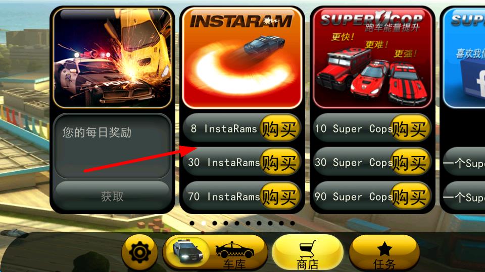 3、通過撞擊或攔截迫使亡命飆車手停車,完成追擊任務(wù)獲取獎勵,解鎖更高級的賽車與新的追擊地圖,提升追擊能力。