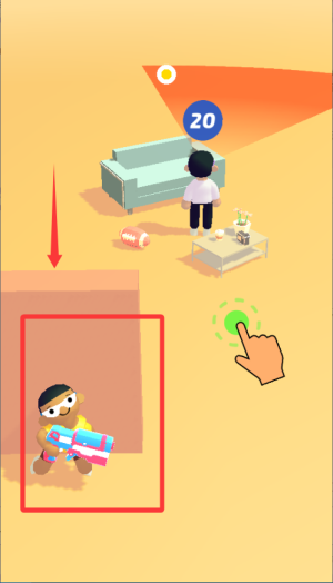 1、控制搗蛋鬼悄悄接近目標(biāo),看準(zhǔn)時機(jī)用水槍射擊,射完趕緊跑,別在原地逗留,避免被發(fā)現(xiàn),動作要快才安全。